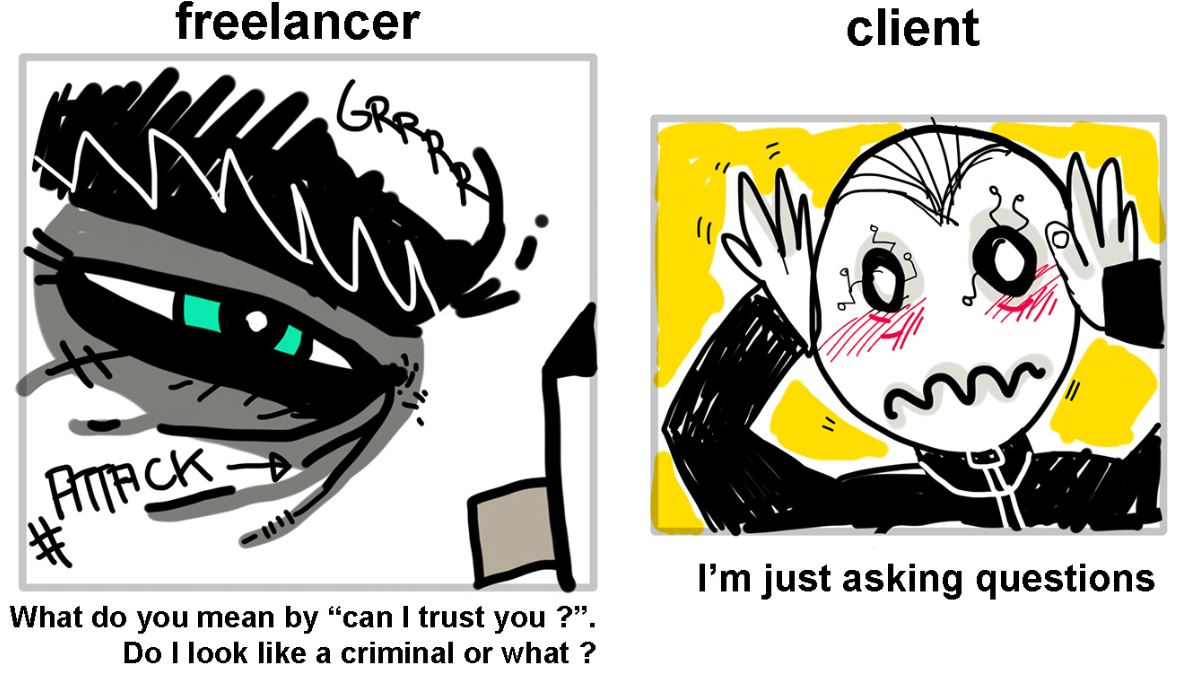 These questions may seem silly but they’re not — when working digitally, you’ll never see your client in real life, and giving money to a perfect stranger is an act of trust.