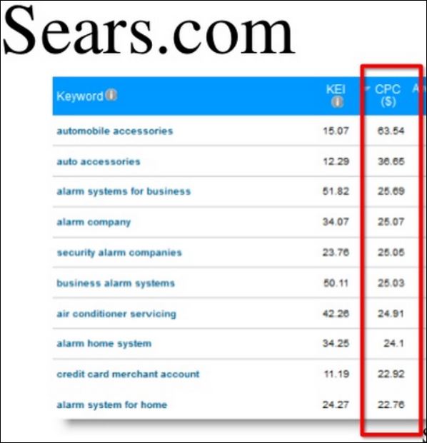In this example from Sears, we see the amount of money being paid for a click: