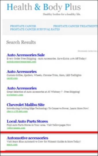 Here is an example of a site created by the Bad Guys that really has nothing to do with the product or the keywords. Dr. Fou featured this in his slideshare presentation on Click Fraud: