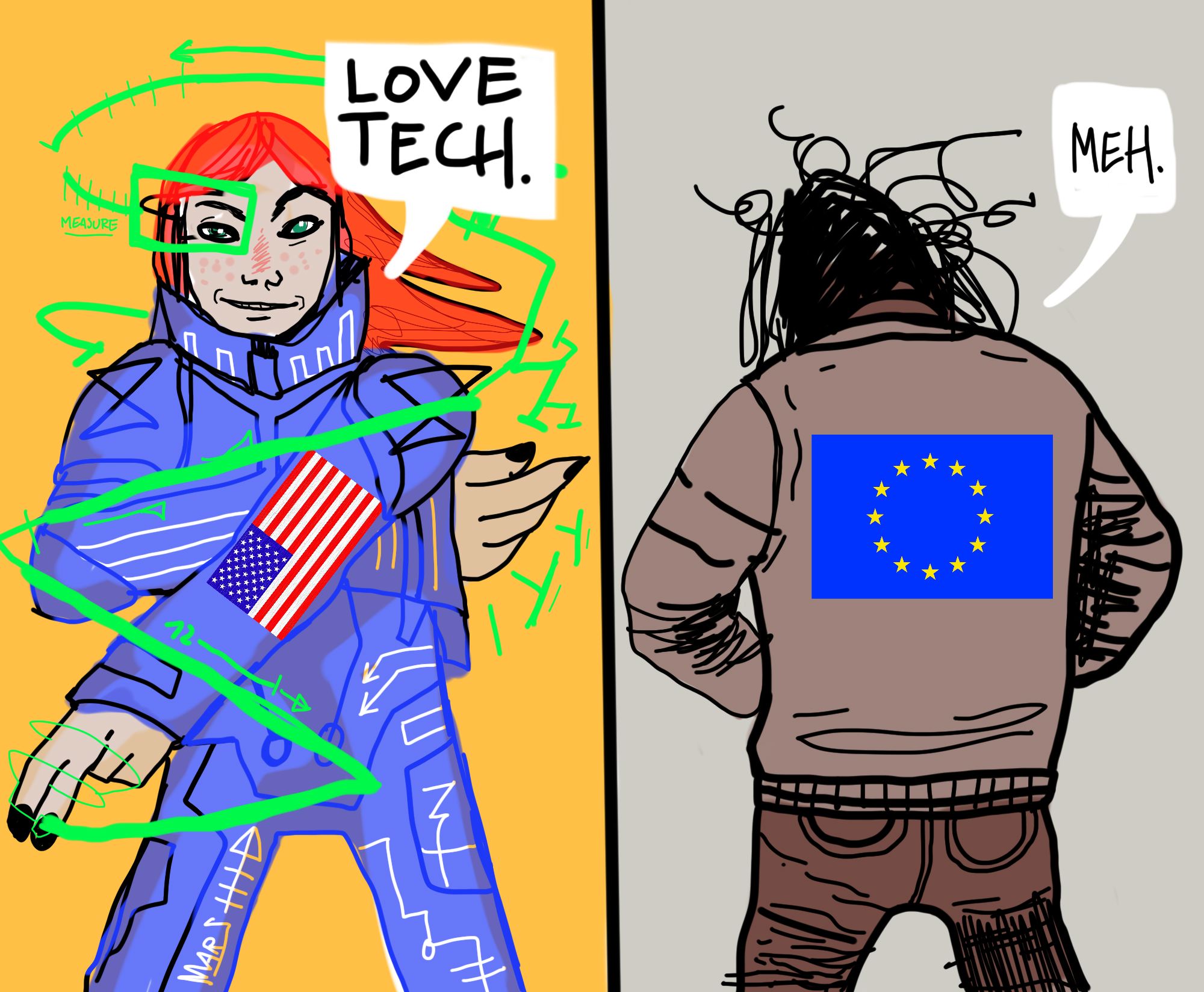 Gosh, people are obsessed with the past over here. Western Europe is at least 2-3 years behind the US in terms of technological adaptation. And that’s seeing it positively, with glowing rainbow glasses on. Blink blink.