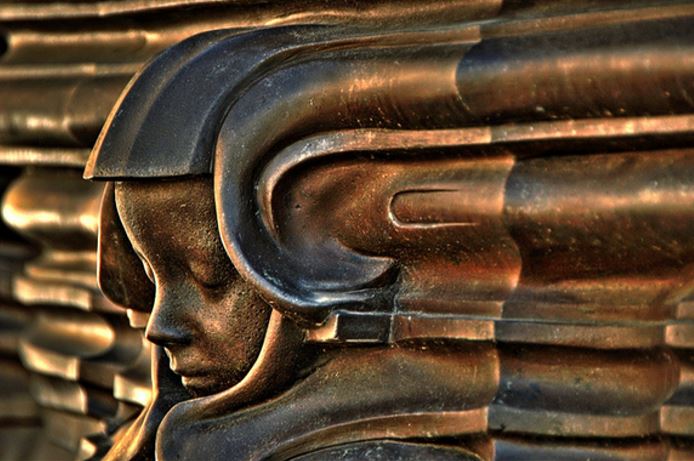 Illustration: Face trapped in the bronze plinth of the statue of Queen Victoria by Alfred Gilbert, 1903, near the cathedral in Newcastle upon Tyne. Courtesy Flickr CC and Kloniwotski.