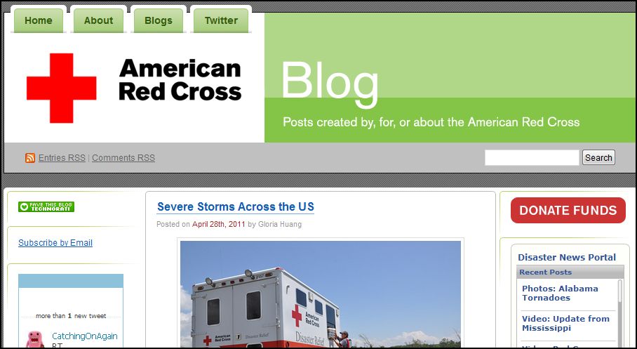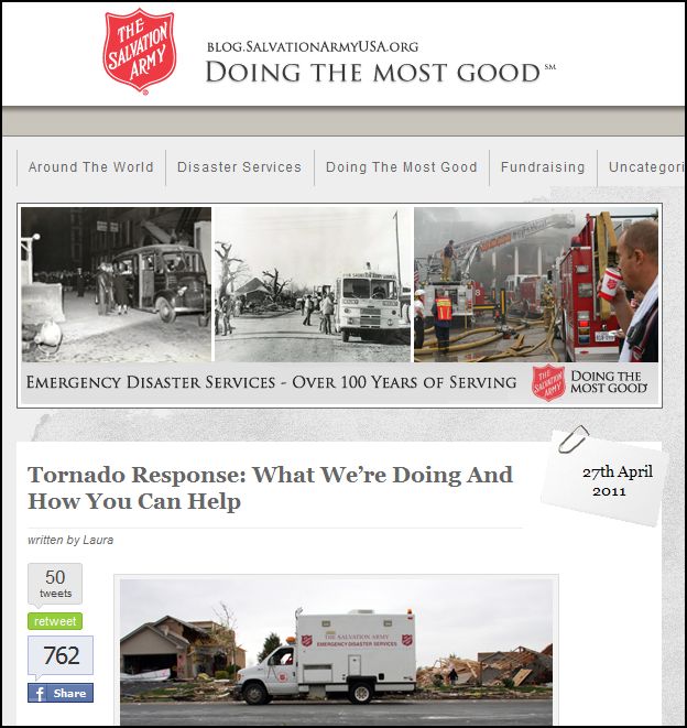This is a wonderful, interesting blog.  Of course it serves as the place to go in the event of a disaster, but it is also an entertaining read.  As a good example, read this post about the historical role of The Salvation Army in the devastating 1906 San Francisco earthquake.  Another post features a “fashionista” getting her clothes from a Salvation Army Thrift Shop. Not only is this type of post great story-telling, it connects readers with the history and rock-solid foundation of the organization in an entertaining way that cuts through the noise.