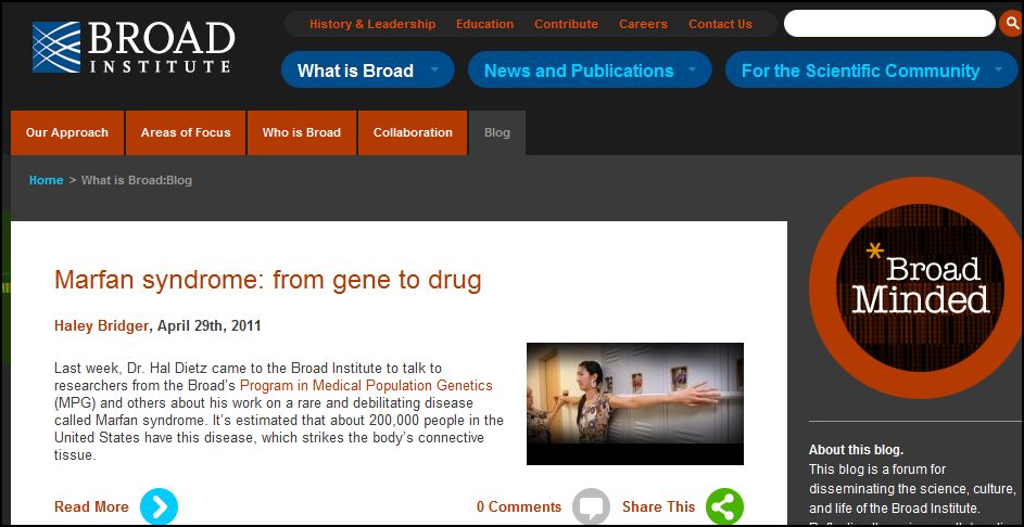 The charming thing about their blog — Broad Minded — is that it frames complicated subjects in accessible terms. I’m partial to science literature any way so this blog was a delight. I mean how can you miss with a blog post titled “Lifestyles of the Fungal and Famous” or another that explains unraveling mysteries of DNA as a Julia Childs recipe.