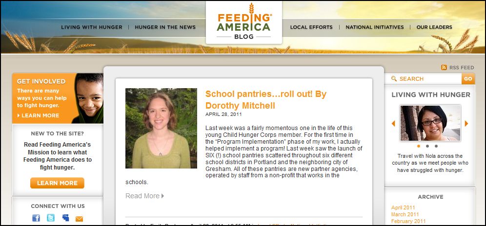 While a good-looking and well-organized blog, inexplicably, it seems to stand alone from the primary Salvation Army site. There is no easy way to connect directly to the organization or donate money right from the blog. Missed opportunity.