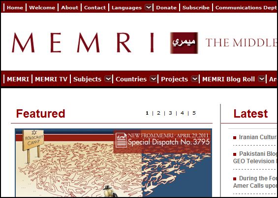The Middle East Media Research Institute (MEMRI) explores the region’s media (both print and television), websites, religious sermons and school books. This blog stands out in a special way because essentially, the blog IS the organization.