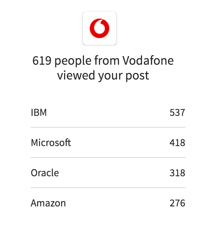 I didn’t expect that this little post would have an impact on anything. But it did, and I’m glad. It started an important conversation about social selling. Here is a screen shot of the company representatives who viewed my post the most: