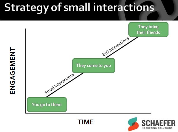Relationships start with small interactions — and you probably have to go to where your customers are at first. As they get interested in you, maybe they will start coming to your site where they may connect in a bigger way, and eventually bring their friends as they turn into fans.
